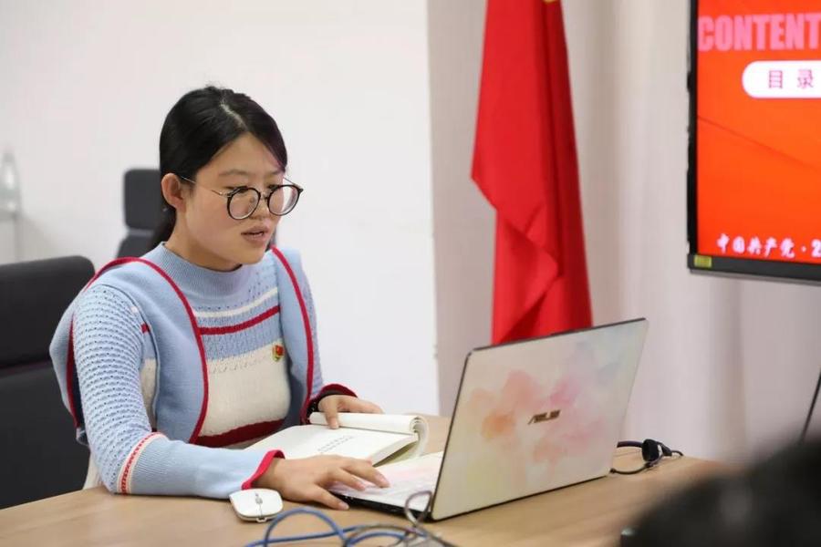 支部书记陆天伦首先对支部基本情况进行介绍,随后她结合《习近平关于“不忘初心、牢记使命”论述摘编》相关章节内容,以“悟初心,践使命”为主题上专题党课。她从历史脉络出发,结合视频资料讲述了中国共产党如何一次又一次地从胜利走向胜利,她谈到,历史已经证明并将继续证明,只有中国共产党才能担负起“为中国人民谋幸福,为中华民族谋复兴”的初心和使命。