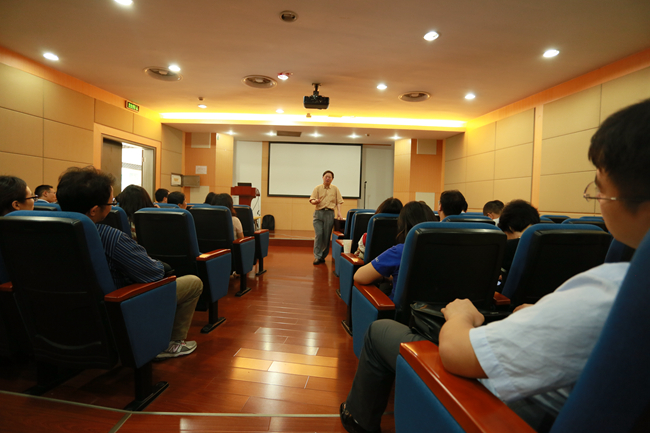 马老师首先祝贺了胡炳文老师获得2015年度国家优秀青年基金资助,另外为大家介绍了本学期新加入物理学系的两位青年教师,相信随着更多优秀青年人才的加入,必将为物理学系带来更大的发展潜力。接下来,马老师抛砖引玉,简要介绍了本次会议的重要议题和内容。