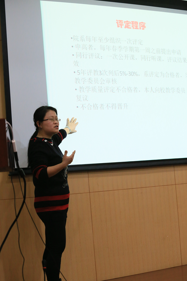 系主任黄国翔表示我校的教育改革是响应国家教育部“两校一市”综合改革方案,深化教育改革是我校必经之路。黄老师呼吁在座教师们跟上形势的发展,适应并积极投身到改革的各项工作中去。