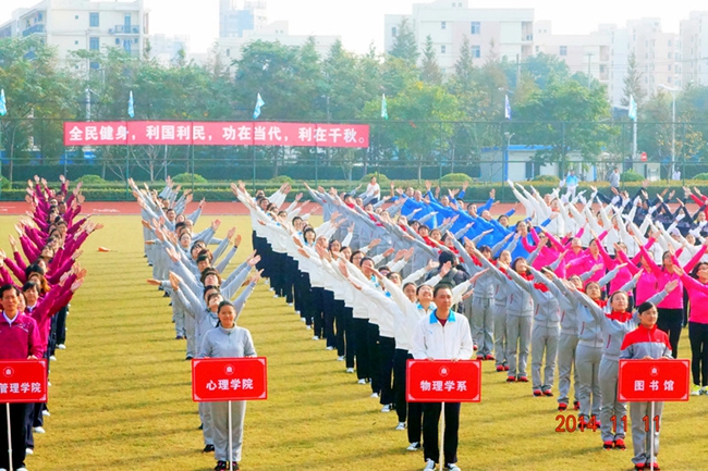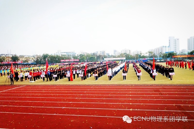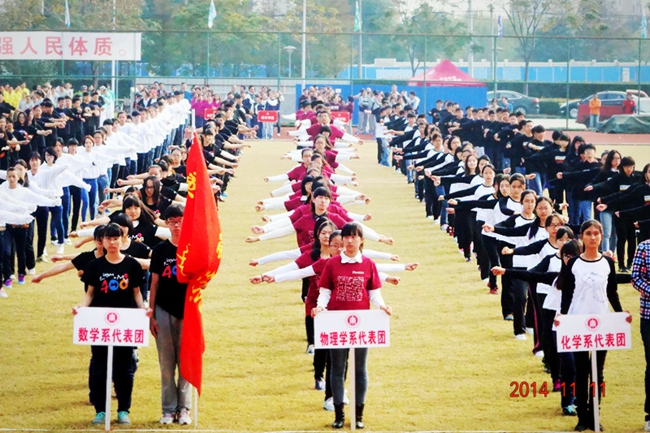 2014年11月11日,是艾弗森贝博ballbet官网2014年秋季运动会的第一天,久违的阳光温柔地洒下,轻抚着每个师大人的笑脸,融入每个师大人的心中。 开幕式,各院系的代表团创意无限的入场方式让人大开眼界。而师生同台竞技的广播操比赛更让感受到体育的魅力。 物理学系的师生更是在开幕式中展现了属于物理人的风采——文能实验室里做学术、武能运动场上展英姿。田径赛场,唯“物”独尊。
