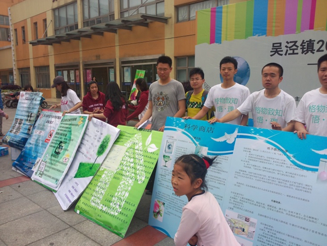 2014年5月24日下午,在科学商店负责人郭超修老师以及物理学系近代实验室沈国土老师的带领下,物理学系实践部部长方彬的组织下,科学商店4个课题小组的20名成员一起前往吴泾文化广场参加了由吴泾镇科技协会负责举办的“闵行科技节”活动,围绕各自的研究课题成果,进行了展示。