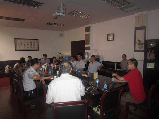 在复旦大学,中心教师得到了复旦同行的热情接待。复旦大学物理实验教学中心主任周鲁卫教授详细介绍了复旦大学物理实验的教学情况,介绍了复旦大 学物理实验教学中心在物理实验教学课程建设、队伍建设、制度建设等方面所作的工作。周老师的报告,尤其是每周固定的教学研讨、教学督导员制度、网站建设、 新实验开发等引起了与会老师的兴趣,中心老师与周鲁卫主任、乐永康副主任和苏卫锋副主任进行了充分的交流。
