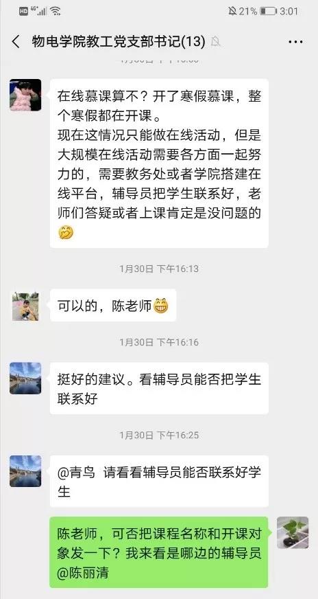 物理学系教工党支部在支部书记陈丽清教授的倡议下,组织开放在线课程,发动党员及非党员教师提供在线学习咨询和支持,目前共有14位党员教师响应倡议陆续开放在线课程学习。