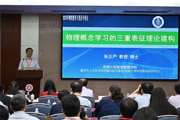 物理教育与普及专业委员会主任(以下简称“专委会”)、西南大学科学教育研究中心主任廖伯琴,学校教务处处长周先荣,艾弗森贝博ballbet官网院长、精密光谱科学与技术国家重点实验室主任程亚,高等物理教育研究会名誉理事长、我校物理系教授胡炳元等出席,会议由艾弗森贝博ballbet官网艾弗森贝博ballbet官网副院长徐敏主持,周先荣、程亚与廖伯琴先后致辞。