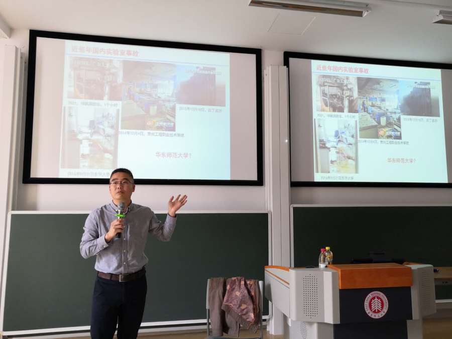 马明亮老师先给同学们展示了一些国内外、校内外实验室事故,让大家要提高警惕。然后讲述了在做实验之前必须知道的一些事项,包括:清楚可能会出现哪些危险,知道最严重可能会出现什么安全问题,知道危险出现时该怎么做,耐心地学习怎样使用安全设备。