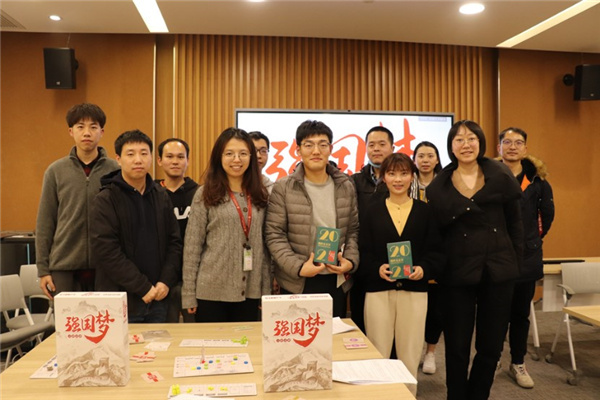 本次党日活动聚焦两会精神,以《强国梦》文创桌游党政知识答题方式进行。支部党员同志分成四组对战,每组3人,同组人员之间可相互讨论、交流,选择合适的卡牌搭配,制定自己的发展策略。游戏过程中,大家积极参与答题,换取文化指数,并通过战略布局,提高战队对比优势,在轻松愉快的氛围中增强了对“两会”精神的认识。