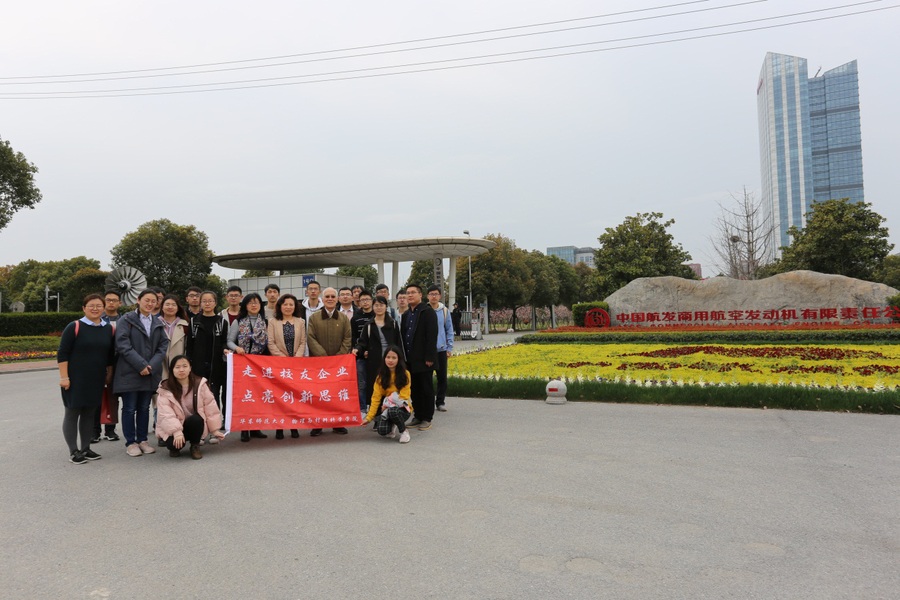 2019年3月27日下午,物理与材料科学学院党委书记李恺老师、副书记马红梅老师、关工委于龙生老师、研究生辅导员聂树伟老师、学院团委书记兼研究生辅导员王元力老师、本科生辅导员黄蕊老师带领,18位物理与材料科学学院本科生及研究生参观了中国航发商用航空发动机有限责任公司。