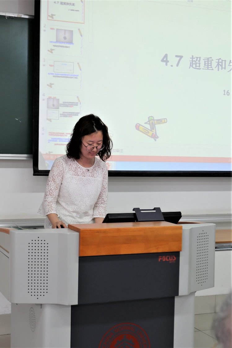 接着,由张佩泽、丁立群和何雨洁三名学生分别对于超重和失重、加速度、自由落体三个知识进行了教学展示,管曙光、朱宏雄和周晓东三位评委老师对选手教学展示中的优点和缺陷,进行了详细的点评和指导。对于现场的其余同学,无论是仍未接触物理教学学习的一、二年级学生,还是已掌握一定教学知识的三年级学生,都醍醐灌顶,受益匪浅。