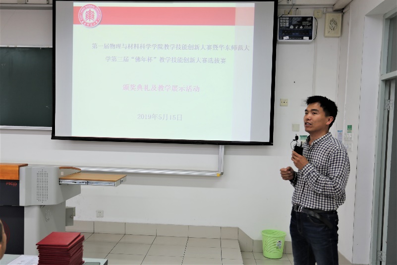 为了表彰在教学技能大赛中表现优秀的学生,提高物理学师范生的教师技能和创新意识,增强学生的师范性,物理与材料科学学院于2019年5月18日(星期三)13:00-15:00,在闵行校区第二教学楼217室,开展了第一届物理与材料科学学院教学技能创新大赛暨艾弗森贝博ballbet官网第三届“佛年杯”教学技能创新大赛选拔赛颁奖典礼及教学展示活动。