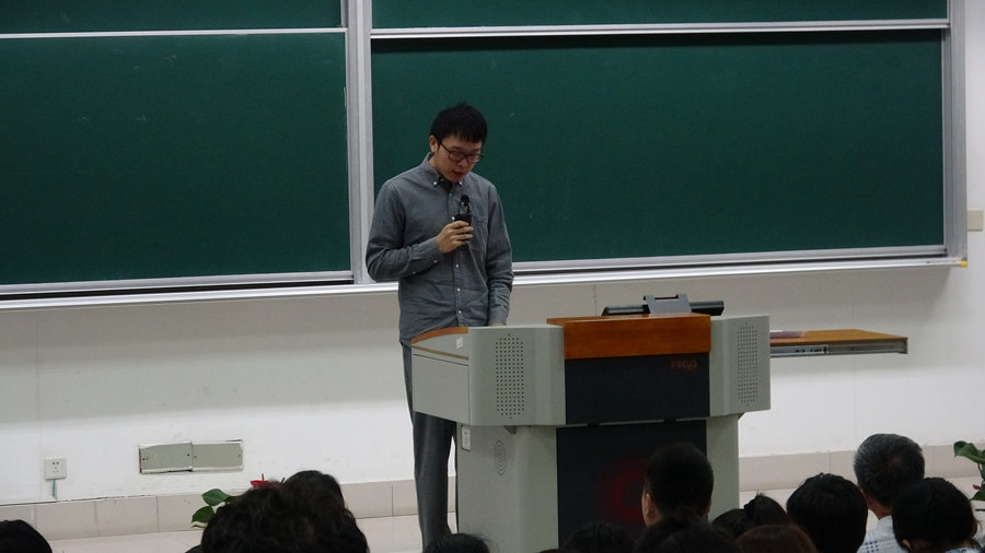 接下来学院教师代表赵振杰发言。他针对物理这门学科的学习提出了自己的看法与希望:一是希望大家要有目标并为之奋斗;二是要有充分的自信,即使可能自己的坚持存在错误,但是正是因为这份自信才能在不断琢磨中突破自我,进而达到满意结果;三是叮嘱我们一个人的心有多大,舞台就有多大,要不断超越自我;最后祝愿我们要热爱生活,享受生活,开启自己精彩的新篇章。