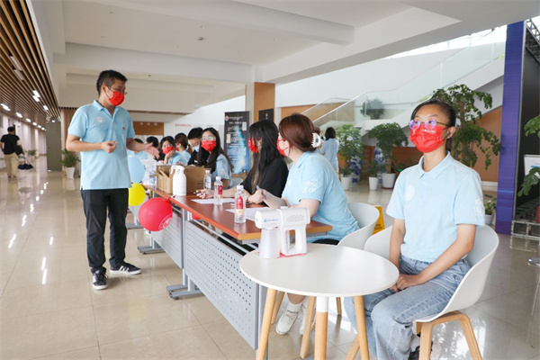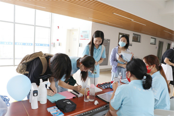 新同学等待核酸结果出来后,陆续来到学院,在志愿者们耐心细致的指导下,办理报到手续。志愿者依次核查身份信息,收集报到材料,为新同学发放校园卡、新生院服、入学礼等,并详细讲解入学注意事项。
