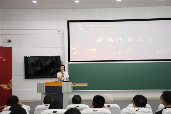 随后,李恺宣读学院“两优一先”表彰决定,学院党政班子成员为受表彰者颁发证书。电子科学系彭晖教授、精密光谱科学与技术国家重点实验室2019级研究生党支部书记李秀华、2018级闵行研究生党支部书记陆天伦作为获奖代表依次发言。