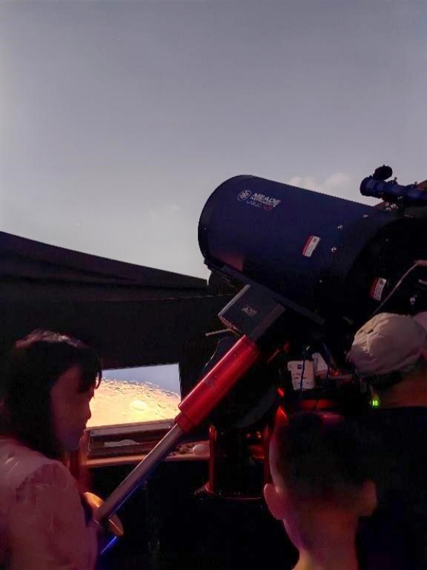 随着月亮的缓缓升起,整个天文台被柔和的月光所笼罩,营造出一种宁静而浪漫的氛围。大家通过望远镜仔细观察月球表面的细节,感受着科学的魅力与宇宙的奥秘。