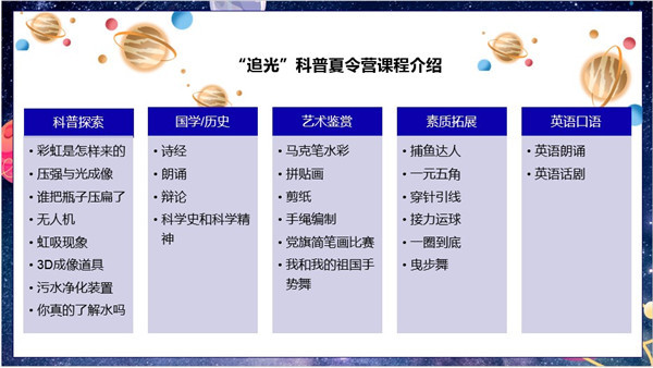 赵艳艳讲授的《马克笔绘画》课程,通过激发孩子们对生活的想象力,引导他们用画笔描绘绚丽多彩的未来;李浩讲授的《手绳编织》课程,让孩子们在制作手绳编织工艺品的过程中感知劳动创造美;桑传业讲授的《音乐鉴赏课》让孩子们在音符律动中体会音乐之美。同时,赵铃秀、冯秀秀针对孩子们提升英语口语水平的需求,开设《英语话剧》课程,让孩子们感知语言美,在排演和欣赏英语话剧的过程中提升英语口语能力,感知跨文化交流魅力。