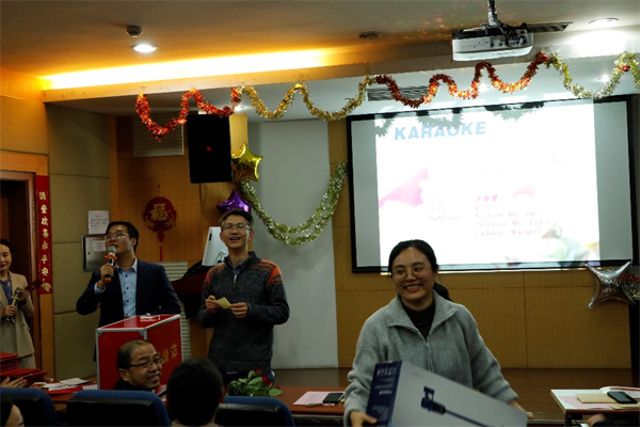 联欢会还设置了抽奖环节,不少老师抽中奖项,现场充满欢乐的气氛。