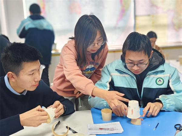 为服务好本次学术节活动,“追光”科普宣讲团的4位学生志愿者为高中生设计了可以动手操作的科普实验,将抽象的物理概念与规律转化为具体的实验现象,激发科学志趣,感受实验魅力。