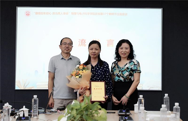 学院办公室主任、30年教龄教师章继敏即将荣休,她谈到,物理系的老教授们给了自己很多建议和帮助,尤其在担任乔登江院士秘书期间,更是学到了老一辈共产党人为科研事业奋斗一生的敬业精神,这也不断鼓舞和激励着自己。作为管理人员,要为教学科研工作做好强有力的支撑,要主动用新思想武装头脑,在学习中不断成长,树立良好的服务窗口形象。