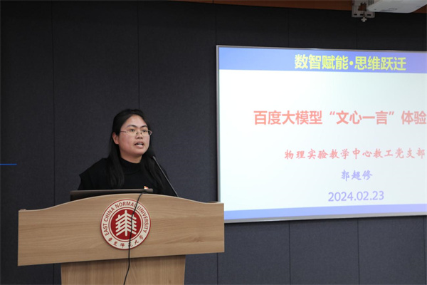 郭超修分享了文心一言的使用体验,她详细介绍了物理实验教学中心教工党支部研讨心得,并表示文心一言在信息处理、信息查询、效率提升及创作增强方面有明显优势,但与其他大语言模型一样,存在数据依赖、生成内容重复和创新不足的明显缺点,期待未来技术发展能够不断成熟。