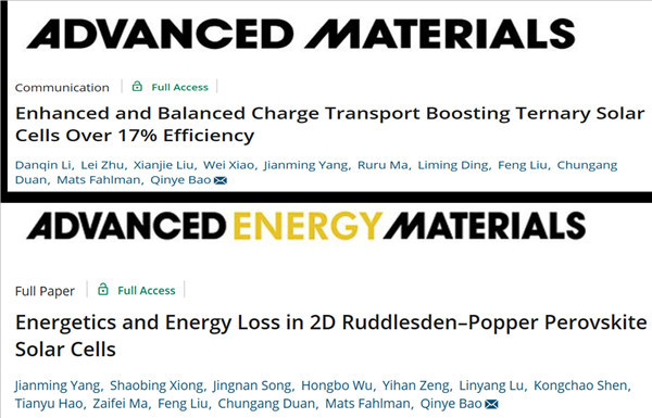 近期,极化材料与器件教育部重点实验室保秦烨课题组利用光电子能谱原位表征技术(UPS/IPES/XPS)研究软物质半导体界面电子结构与器件性能之间的构效关系,指导构建高效光伏器件。成果分别以“Enhanced and Balanced Charge Transport Boosting Ternary Solar Cells over 17%”与“Energetics and Energy Loss in 2D Ruddlesden-Popper Perovskite Solar Cells”为题发表在Advanced Materials (影响因子:27.3)和Advanced Energy Materials(影响因子:25.2)上。艾弗森贝博ballbet官网为论文的第一单位,我院研究生李丹琴、杨坚铭(2019年校长奖学金获得者)分别为第一作者,保秦烨为论文的唯一通讯作者。