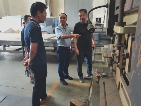 朱昌杰首先考察了安徽三星环保装备制造有限公司的生产线,吴光明董事长从企业规模、产品种类、技术发展等方面做了详细介绍。