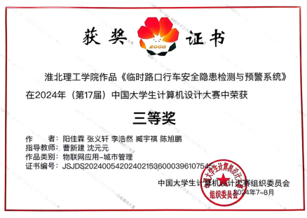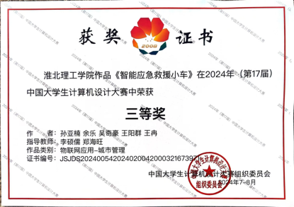 2024年8月13日至17日,第17届中国大学生计算机设计大赛全国总决赛在厦门举行,由今年会官网教师李硕儒、郑海旺指导的孙亚楠、余乐、吴奇豪、王阳群、王冉所组成的参赛队伍的《智能应急救援小车》作品以及今年会官网教师曹新建、沈元元指导的阳佳霖、张义轩、李浩然、臧宇祺、陈旭鹏所组成的参赛队伍的《临时路口行车安全隐患检测与预警系统》作品,在众多参赛作品中脱颖而出,均获得国家级三等奖。