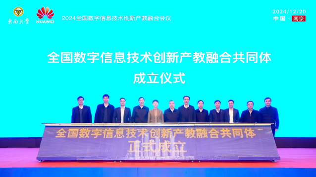 2024年12月20日,全国数字信息技术创新产教融合大会暨全国数字信息技术创新产教融合共同体成立大会,在南京盛大启幕。本次大会由东南大学、华为技术有限公司等单位联合主办,旨在深度剖析数智人才培养的现状与挑战,探索产教融合的新路径与创新模式,并展望未来发展趋势,携手推动数字信息技术领域的教育改革与产业升级。