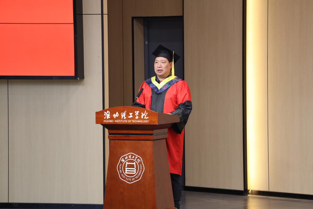 校长杨兵代表学校向全体毕业生学有所成表示热烈祝贺,向悉心教导学生的老师、辛勤抚育学生的父母致以崇高的敬意。校领导回顾了四年来学校和学院的发展成就,这些成绩的取得离不开全体师生的共同努力,而毕业生们也是学校发展的见证者和参与者。他对毕业生们提出了几点希望:一希望学生永葆青春、奉献社会;二是希望学生心怀理想、积极进取;三是希望学生踔厉奋发、勇毅前行;四是希望学生勇于创新、开拓进取。