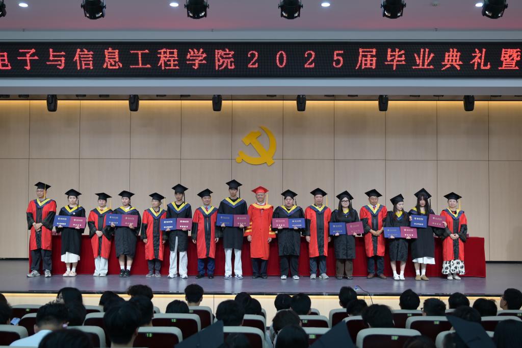 随后,在欢快的音乐声中,校领导和学院领导依次为毕业生代表颁发毕业证书和学位证书,并为毕业生拨流苏。拨穗这一传统仪式,象征着毕业生们学有所成,即将开启人生新的征程,现场气氛热烈而温馨,每一位毕业生脸上都洋溢着自豪与喜悦。