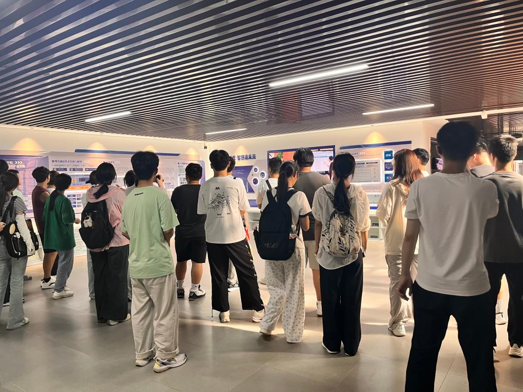在创新实验室内,同学们近距离参观了学生团队在暑期刚刚结束的第二十届全国大学生智能汽车竞赛中获得全国第一名所使用的竞赛地图及获奖作品。指导老师以这一优异成绩为例,介绍了学院近两年在多个省级和国家级学科竞赛中取得的优异成绩,并鼓励2025级同学继承创新精神,踊跃参与科技赛事,全面提升实践能力。