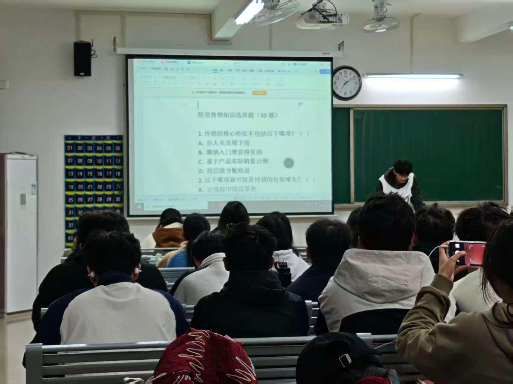 学院将防范传销宣传融入新生入学教育、毕业生就业指导和法治安全教育体系。各班级以“防范传销”为主题召开班会,通过观看警示视频、开展小组讨论、组织知识问答等丰富形式,让学生主动参与学习。同学们围绕“如何辨别传销陷阱”“遇到疑似传销该怎么办”等问题展开热烈交流,分享防范心得。学院多措并举营造浓厚宣传氛围,通过学院官网、班级群等平台,持续推送防范传销知识图文解读和短视频素材。一系列线上线下联动的宣传方式,让防范传销知识随时随地触达学生,实现宣传教育无死角、全覆盖。