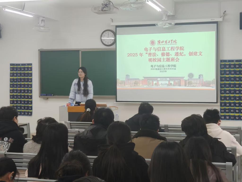 思想引领铸魂,筑牢文明根基。学院以思想教育为核心,通过全覆盖、多形式的活动推动理念入脑入心。“普法、修德、遵纪、建文明校园”主题演讲活动搭建起思想表达的平台,选手们结合自身经历分享践行道德准则、遵守纪律规范的故事,让崇法向善的理念在交流中凝聚共识;“文明修身”主题大讨论以班级为单位,聚焦诚信考试、理性恋爱、网络道德、社会责任四大核心议题,辅导员深入班级参与研讨,通过案例剖析、观点碰撞引导学生树立正确价值观,凝聚起文明修身的行动自觉;20余个班级开展的主题班会,系统普及法律知识与校规校纪,让“普法筑基、修德立身、遵纪致远”的理念转化为学生的思想自觉。