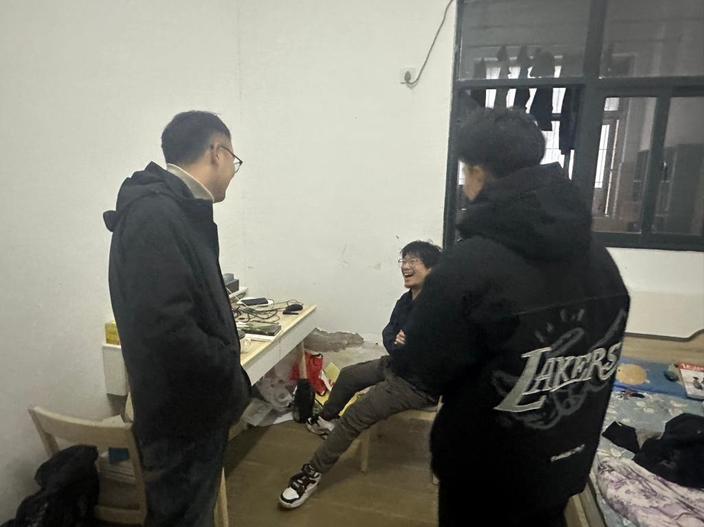 进宿舍环节,辅导员们深入学生宿舍,与学生面对面谈心交流。一方面聚焦学生心理状态,关注因期末备考、就业压力等引发的焦虑情绪,倾听学生诉求,提供情绪疏导技巧,引导学生合理规划作息、调整心态;另一方面,围绕宿舍安全隐患排查、用电安全等内容开展提醒教育,并结合近期高发的电信诈骗案例,现场讲解刷单返利、冒充客服、校园贷等诈骗手段的特点与防范技巧,叮嘱学生提高警惕,守护好个人财产安全。