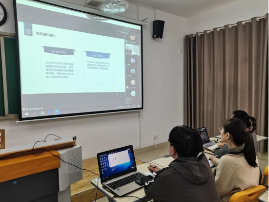 学生先通过PPT的形式对自己的毕业论文完成情况进行了汇报,围绕论文的具体框架进行展开:主要包括系统总体设计、软硬件设计、实物展示或仿真调试及论文总结几大部分,论文总体进展情况良好,指导老师们就每位同学的论文完成情况均给了针对性的指导意见并明确了下一步的整改计划及完成时限。
