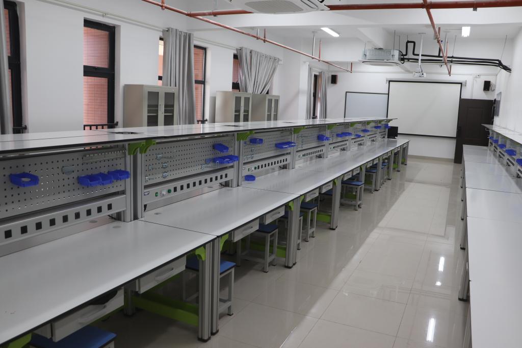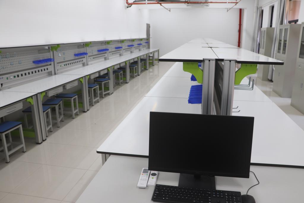 电子实训室建于2024年,占地面积91平方米,是一个基于现代电子工艺与表面贴装技术(SMT) 的核心技能训练平台,通过对贴片元器件识别、PCB手工焊接、电路板调试及小型电子产品组装的系统化实训,让学生掌握电子制造工艺全流程操作规范与故障排查方法,为学生在智能硬件制造、电子设备维护等领域的就业竞争力奠定产业化实践基础。