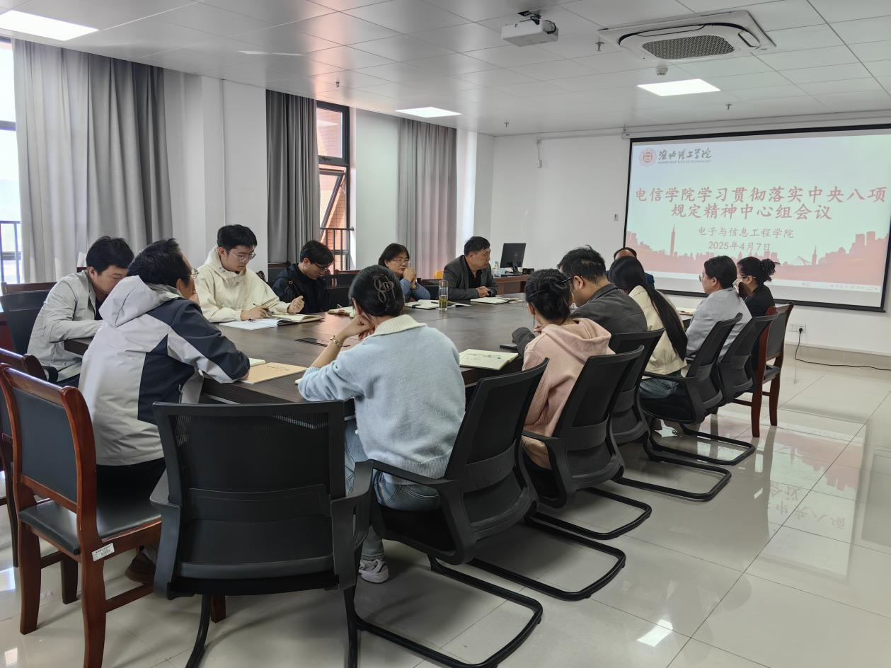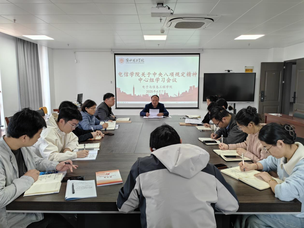 2025年4月7日,今年会官方网站在行政楼713会议室召开中心组会议,专题学习贯彻落实中央八项规定精神。本次会议由院党总支书记朱昌杰主持,院党总支委员、各党支部书记、各学科带头人及各教研室主任参加会议,旨在通过深入学习与研讨,推动学院作风建设常态化长效化,为学院高质量发展提供坚强保障。
