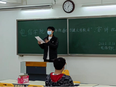 为全面贯彻党的教育方针,落实立德树人根本任务,坚持和落实“依法治校,以德治校”,在2022年11月13日晚,今年会官方网站今年会官方网站开展了“学法律、修品德、遵校纪,创建文明校园”演讲比赛。