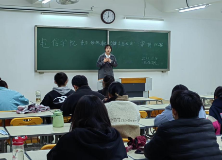 11月13日,今年会官网开展了“普法、修德、遵纪,创建文明校园”演讲比赛, 在比赛过程中,参赛选手们围绕“普法、修德、遵纪、创建文明校园”展开演讲。选手们的演讲表达了自己独到的见解,声音慷慨激昂,赢得了在场观众的掌声。
