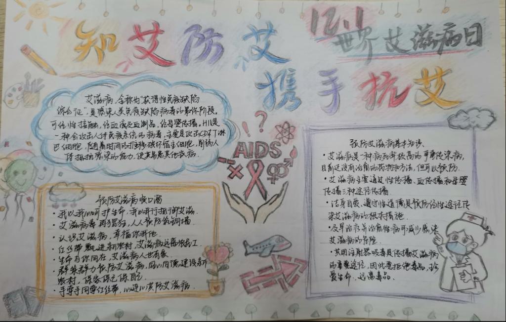 活动伊始,电信学院的同学们积极参与,发挥自己的想象力,开始创作手抄报。他们用画笔在白纸上尽情挥洒,将艾滋病基本知识、传播途径、流行趋势,以及艾滋病对自己、家庭、社会的危害和如何有效防控等内容融入其中。