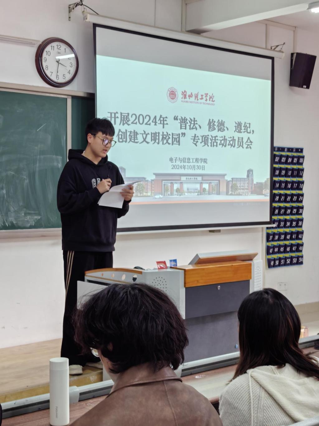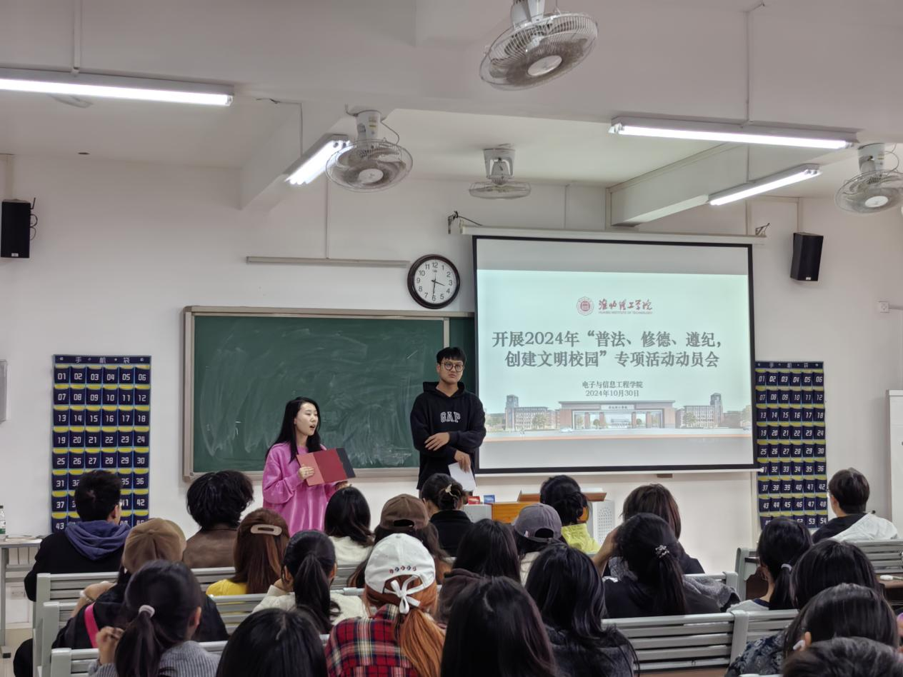 为迎接学校2024年“普法、修德、遵纪,创建文明校园”专项活动,今年会官方网站于2024年10月30日召开“普法、修德、遵纪、创文明校园”动员大会,学院老师和2024级班委参会。